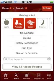 Another cool feature is the advanced search option, where you start off choosing a main ingredient from a list of many options, listed in alphabetical order. You can then choose a meal or course, a cuisine, dish type, season or occasion, and even dietary consideration. All of this is presented in a beautiful and intuitive way, and is really fun and easy to use.
